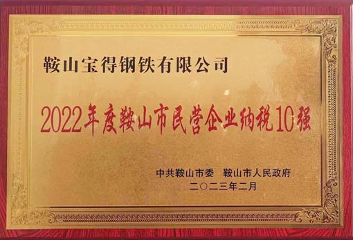 2022年度鞍山市民營企業(yè)納稅10強 |